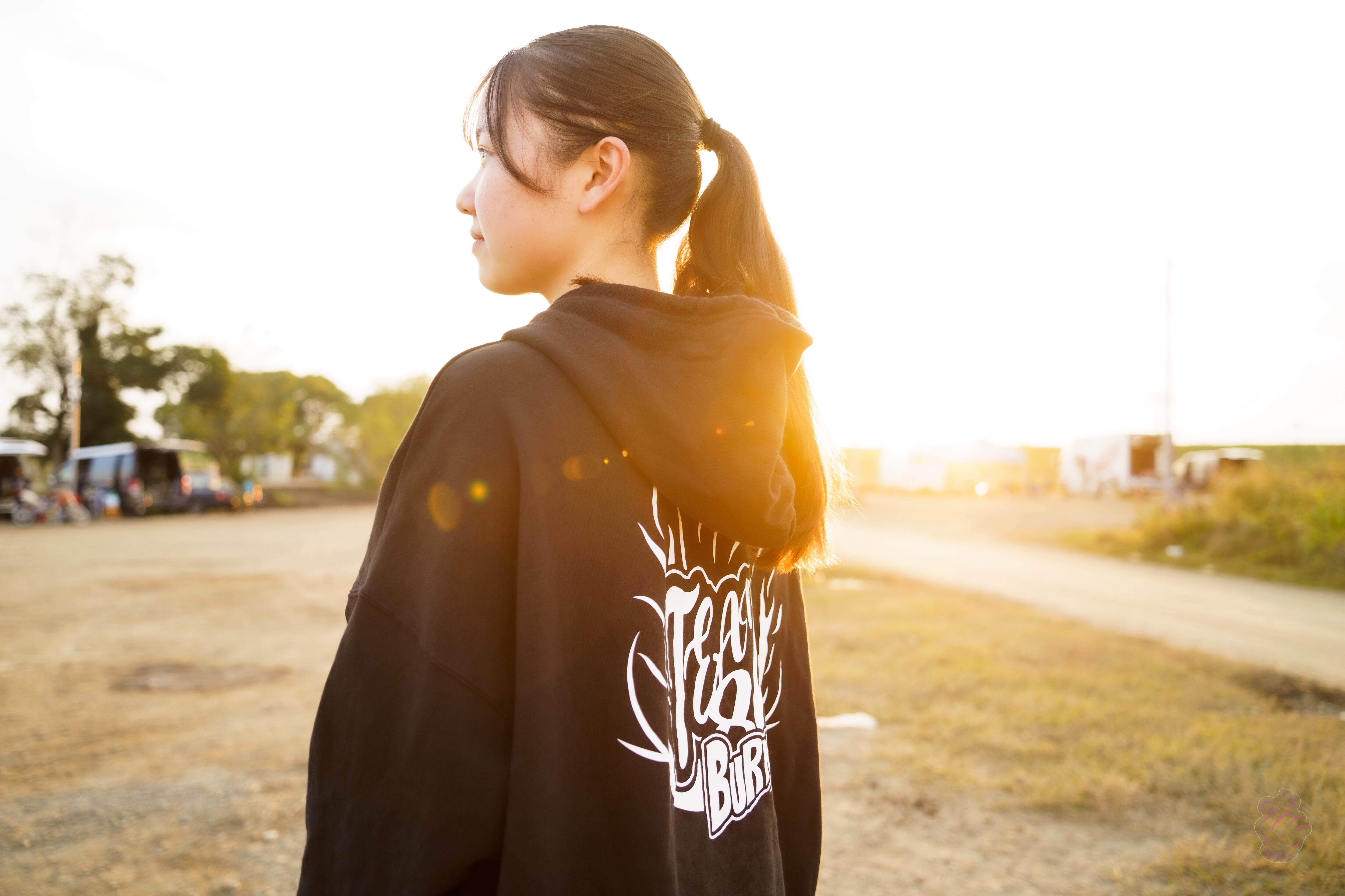 ビッグシルエットパーカー、「BURN OUT」。